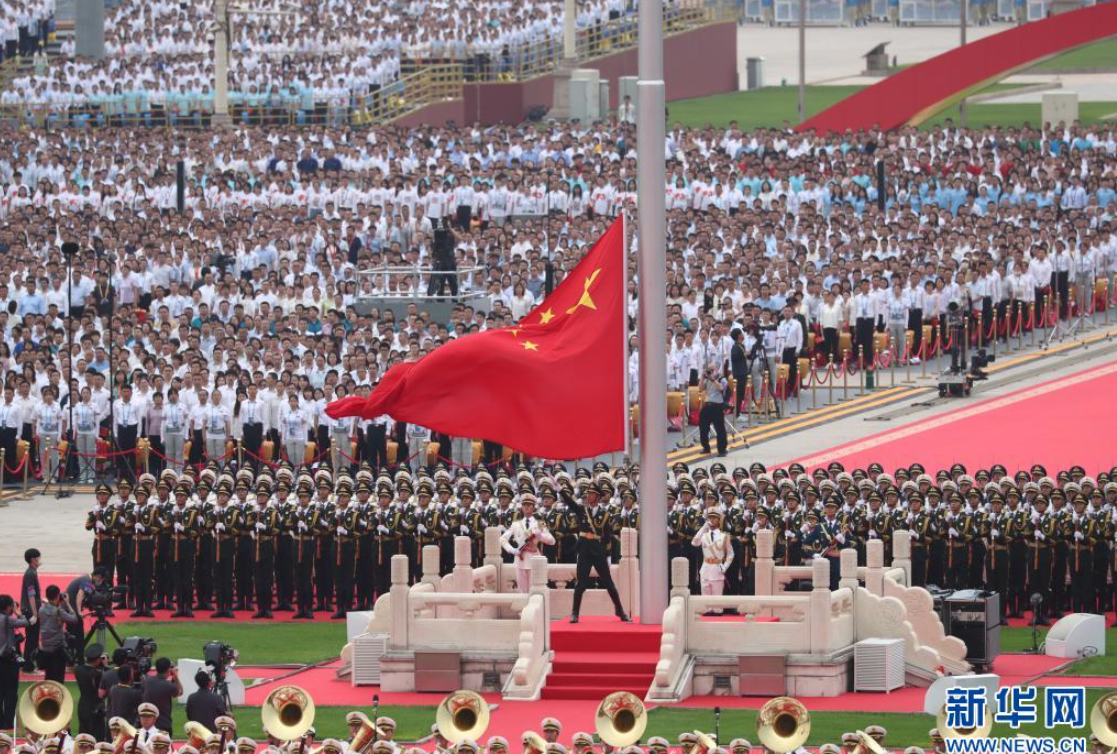 7月1日上午,庆祝中国共产党成立100周年大会在北京天安门广场隆重举行。这是升国旗仪式。