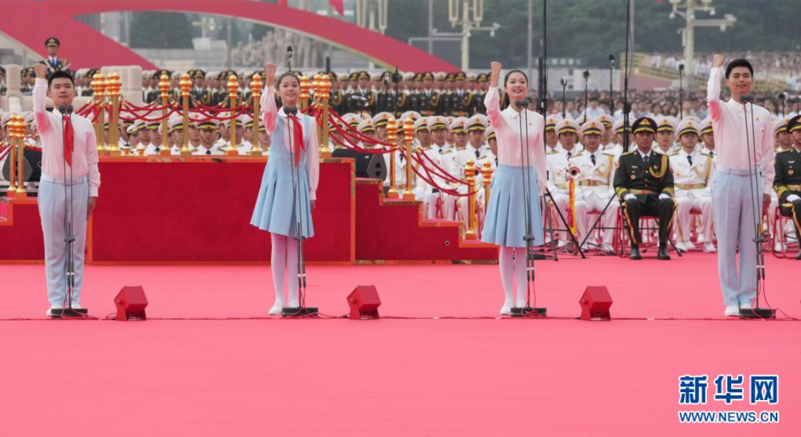 7月1日上午,庆祝中国共产党成立100周年大会在北京天安门广场隆重举行。这是共青团员和少先队员代表集体致献词。