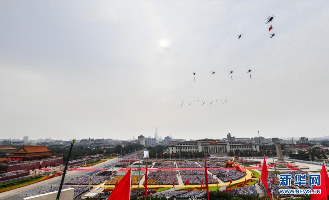 7月1日上午,庆祝中国共产党成立100周年大会在北京天安门广场隆重举行。这是大会开始前的飞行庆祝表演。
