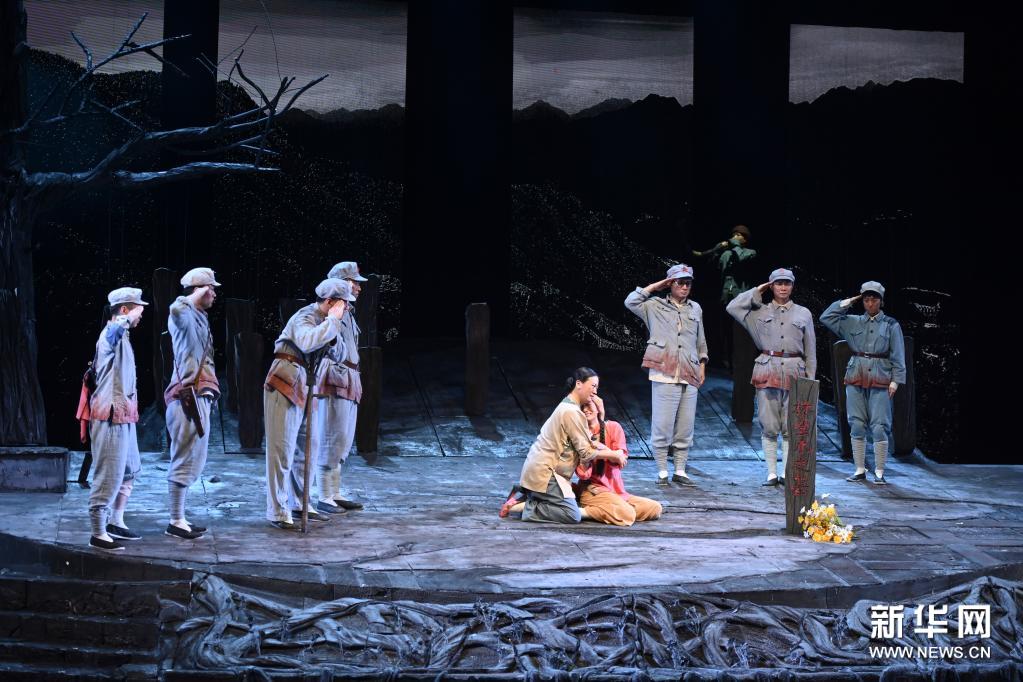 7月3日,在福建人民艺术剧院,演员表演话剧《红军·1343》。新华社记者 宋为伟 摄