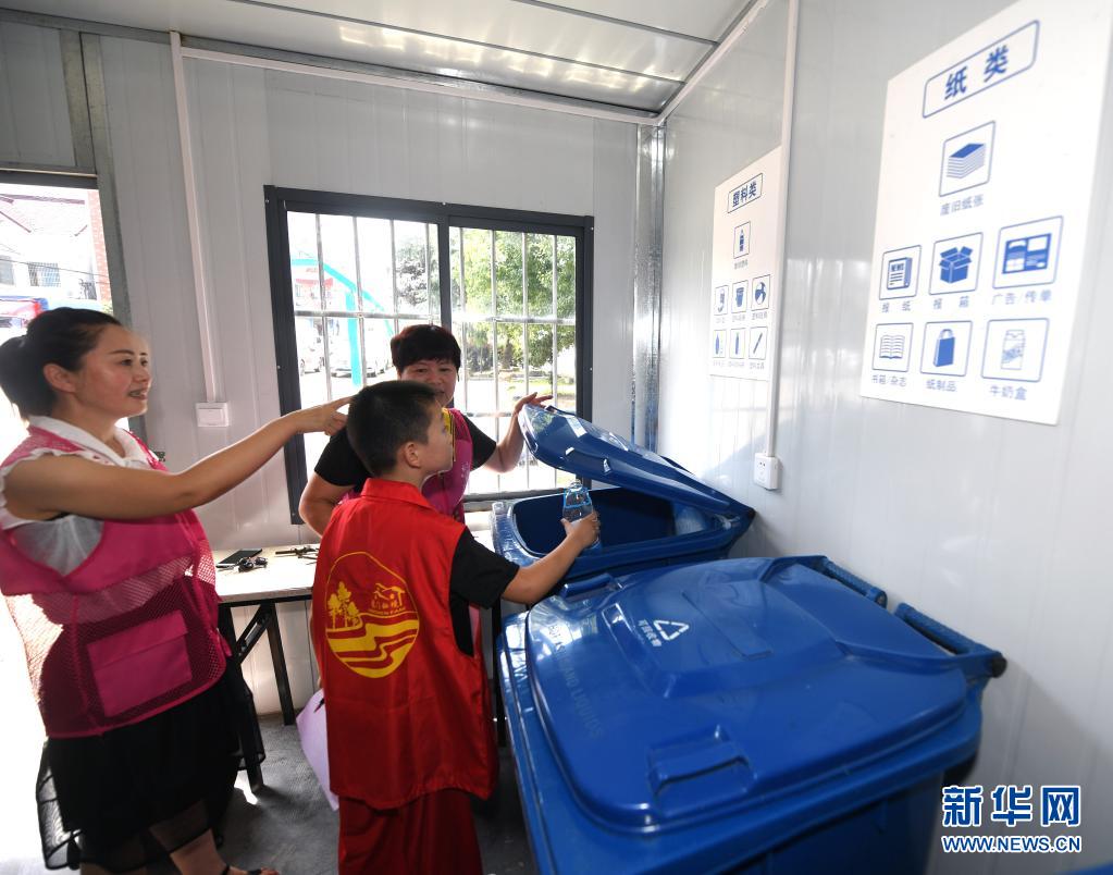 7月6日,在高虹镇虹桥村过暑期的“小候鸟”们在志愿者的带领下到资源回收站学习垃圾分类知识。