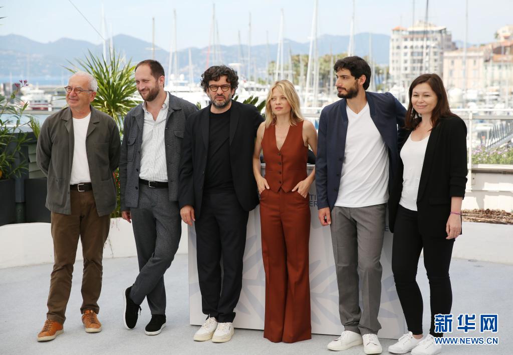 7月7日,在法国戛纳,“金摄像机”单元评委会主席梅拉妮·蒂埃里(右三)与众评委出席拍照式。