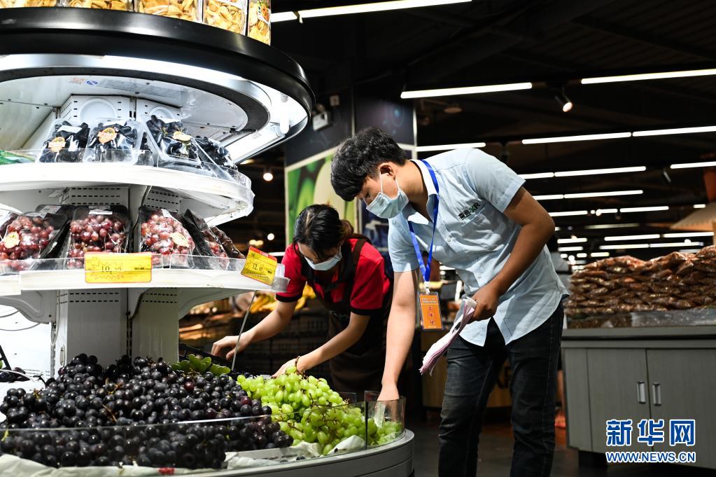 7月7日,工作人员在瑞丽市一家超市内清点商品。新华社记者 王冠森 摄