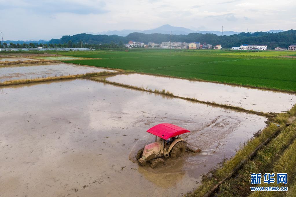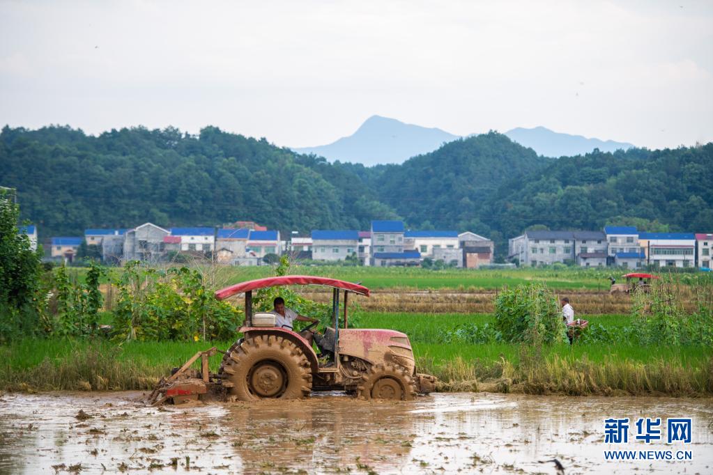 7月7日,在湖南省长沙市浏阳市龙伏镇,村民驾驶农机耕地。 小暑时节,湖南省长沙市浏阳市龙伏镇的早稻成熟,当地农民抢抓农时,在田间抢收早稻、抢插晚稻,田间地头一派繁忙景象。 新华社记者 陈思汗 摄