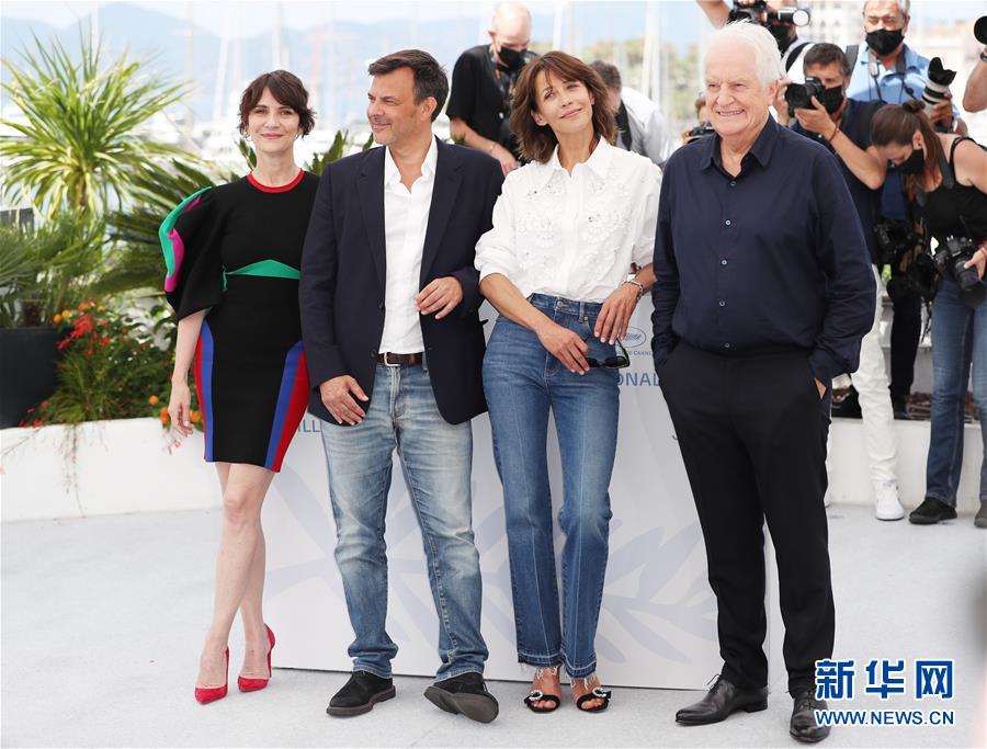 7月8日,(从右到左)演员安德烈·迪索利耶、苏菲·玛索、导演弗朗索瓦·欧容、演员热拉尔迪娜·帕亚在法国戛纳出席影片《一切顺利》拍照式。 法国导演弗朗索瓦·欧容执导的影片《一切顺利》将与其他主竞赛单元影片一起角逐最佳影片“金棕榈奖”。第74届法国戛纳国际电影节于6日至17日举行。 新华社记者 高静 摄