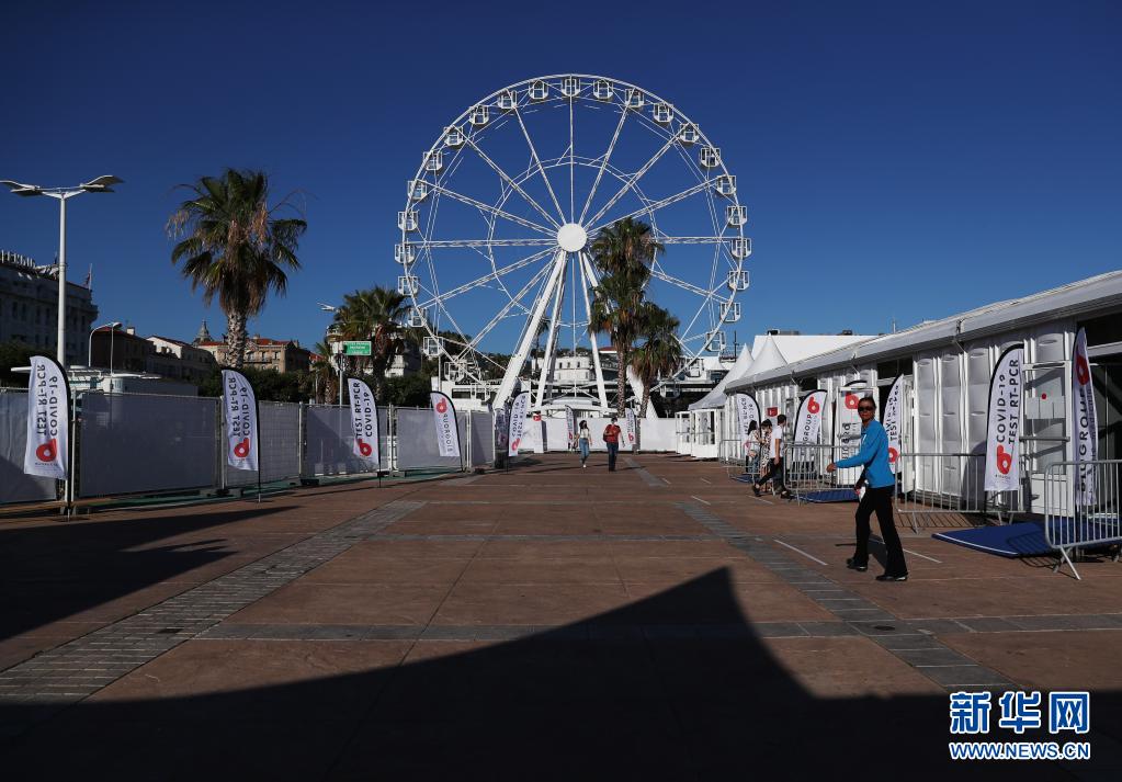 这是7月5日在法国戛纳拍摄的为电影节注册人员设立的新冠病毒检测点。 第74届法国戛纳国际电影节将于7月6日至17日举行。主办方称,电影节期间将采取一系列防疫措施,例如要求出席现场活动者出示“健康通行证”等。法国戛纳国际电影节与德国柏林国际电影节、意大利威尼斯国际电影节并称为欧洲三大国际电影节,戛纳电影节通常于每年5月中旬举办。受新冠疫情影响,第74届戛纳电影节推迟至7月举行。 新华社记者 高静 摄