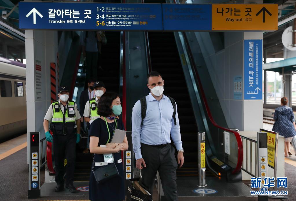 7月8日,人们在韩国全罗北道益山市准备乘坐火车。 韩国中央防疫对策本部8日通报,截至当天零时,韩国过去24小时新增新冠确诊病例1275例,创疫情去年暴发以来单日确诊病例数新高。 新华社记者 王婧嫱 摄