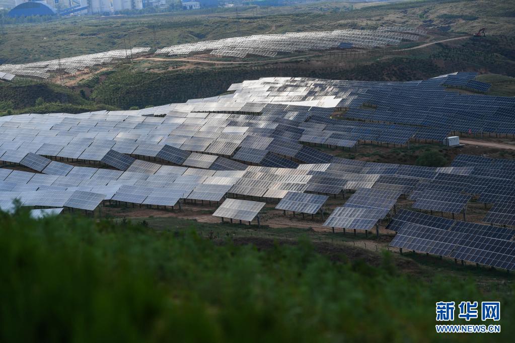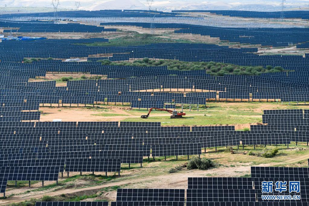 这是天骄绿能50万千瓦光伏发电项目局部(7月13日摄)。 位于内蒙古伊金霍洛旗乌兰木伦镇的天骄绿能50万千瓦光伏发电项目是采煤沉陷区生态治理光伏发电的示范项目,项目占地面积约4.2万亩。目前,项目建设进入收尾阶段,预计年内并网发电。 新华社记者 刘磊 摄