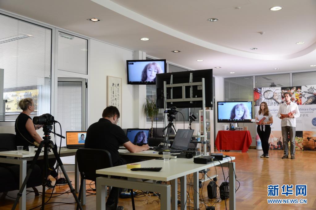 7月17日,在克罗地亚首都萨格勒布,参加“汉语桥”中文比赛的选手通过视频连线参赛。 第20届“汉语桥”世界大学生中文比赛和第14届“汉语桥”世界中学生中文比赛克罗地亚赛区比赛17日在萨格勒布通过在线视频方式举行。 新华社记者 高磊 摄 |