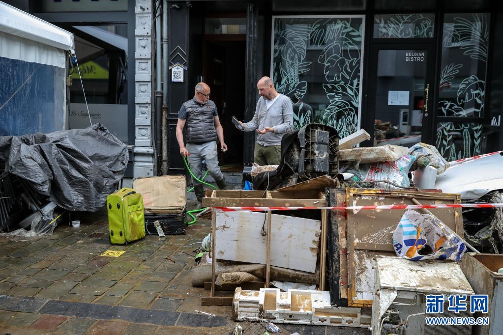 7月16日,人们在比利时韦尔维耶清理被洪水损毁的物品。