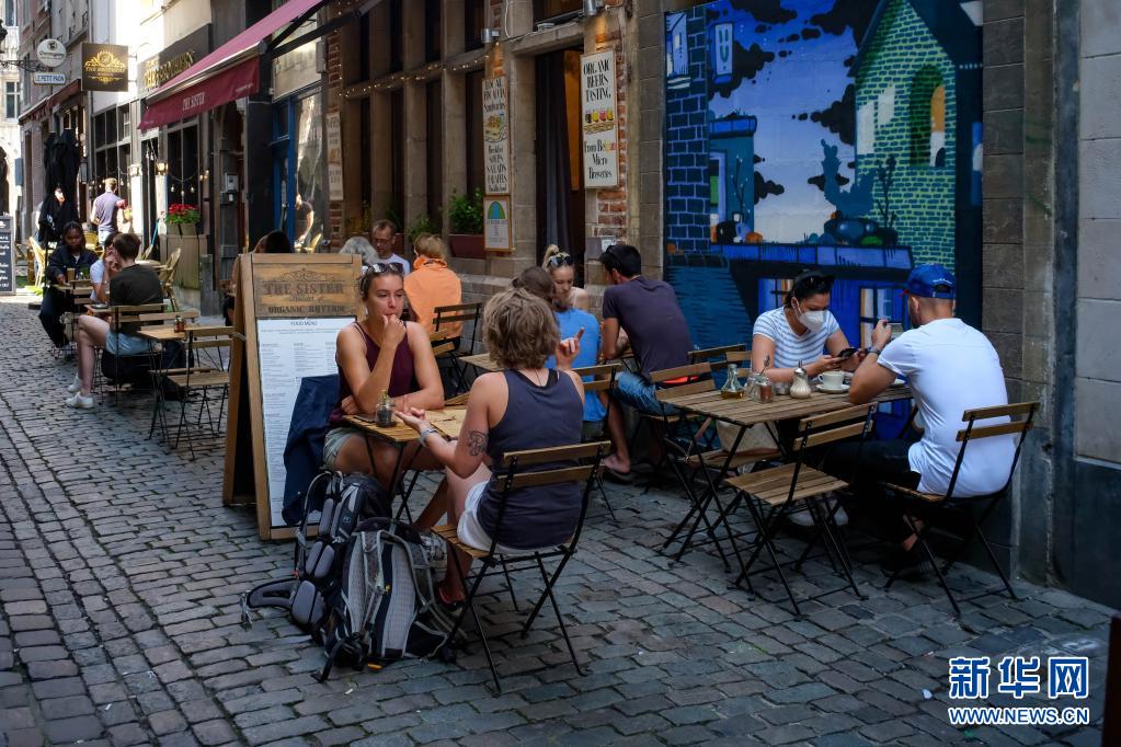 7月19日,人们在比利时布鲁塞尔大广场附近的餐馆吃饭。