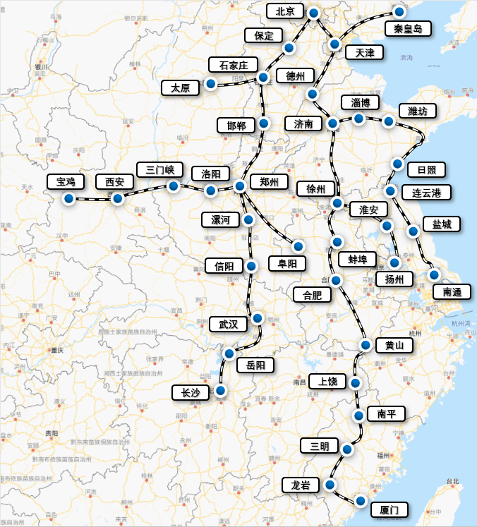 据悉,该列车将承担京广高铁、京沪高铁等线路的载客运行任务。北京、西安、郑州、武汉、南通、厦门……哪一站点是你的家乡,关注线路图,期待与你的美丽邂逅。