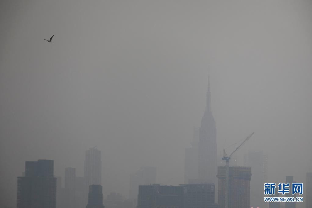 当日,受美国西部山火肆虐产生的烟尘影响,纽约出现雾霾天气。