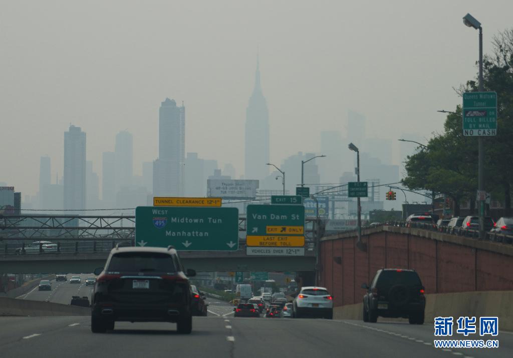 当日,受美国西部山火肆虐产生的烟尘影响,纽约出现雾霾天气。