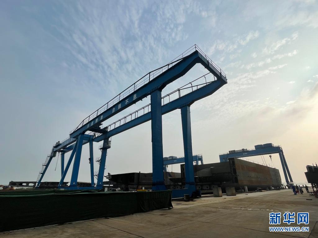 沅江市一家船舶制造企业运用模块化造船技术生产船舶(5月13日摄)。