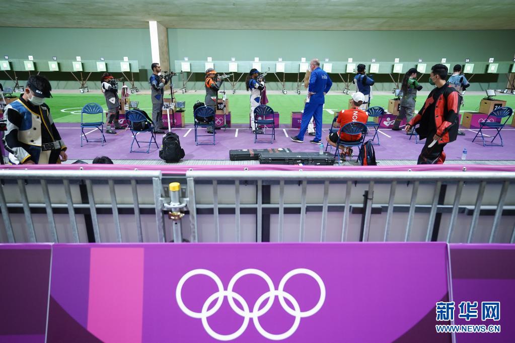 7月21日,各代表队射击队员在朝霞射击场内训练。