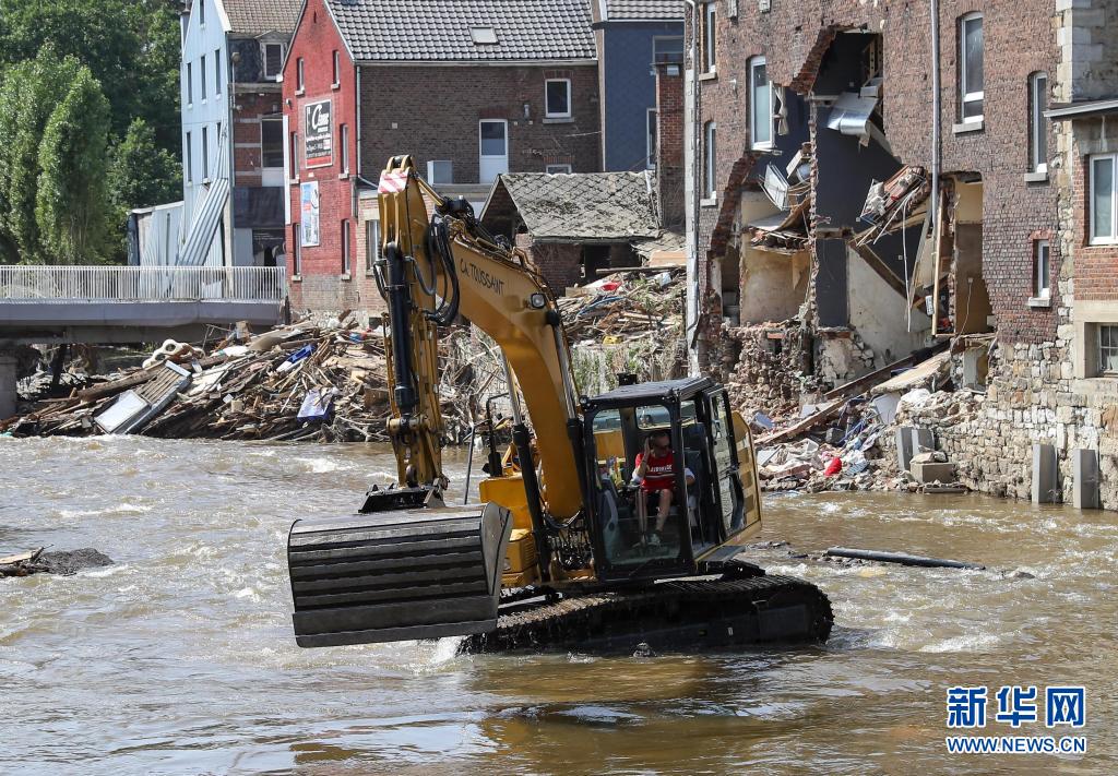 7月20日,一名工作人员在比利时受灾严重的佩平斯特操作挖掘机清理河道。 比利时危机中心20日证实,上周的暴雨及其引发的特大洪灾已造成31人死亡、70多人失踪,全国100多个市镇受到影响。目前,比利时全国范围内的降雨已停止,洪水也已基本退去,灾后重建工作正在有序展开。 新华社记者 张铖 摄