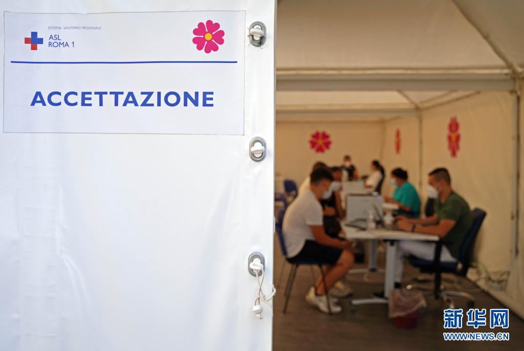 这是7月21日在意大利罗马拍摄的一处新冠疫苗接种中心接待室。