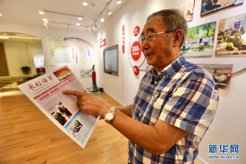 7月24日,今年81岁的立法联系点信息员夏云龙在上海市长宁区虹桥街道古北市民中心介绍社区刊物。 新华社记者 耿馨宁 摄 |