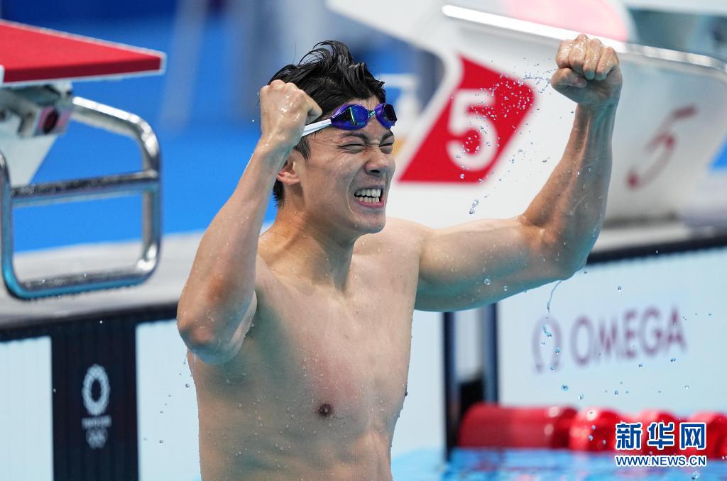 当日,在东京奥运会游泳男子200米个人混合泳决赛中,中国选手汪顺夺冠。新华社记者 许畅摄