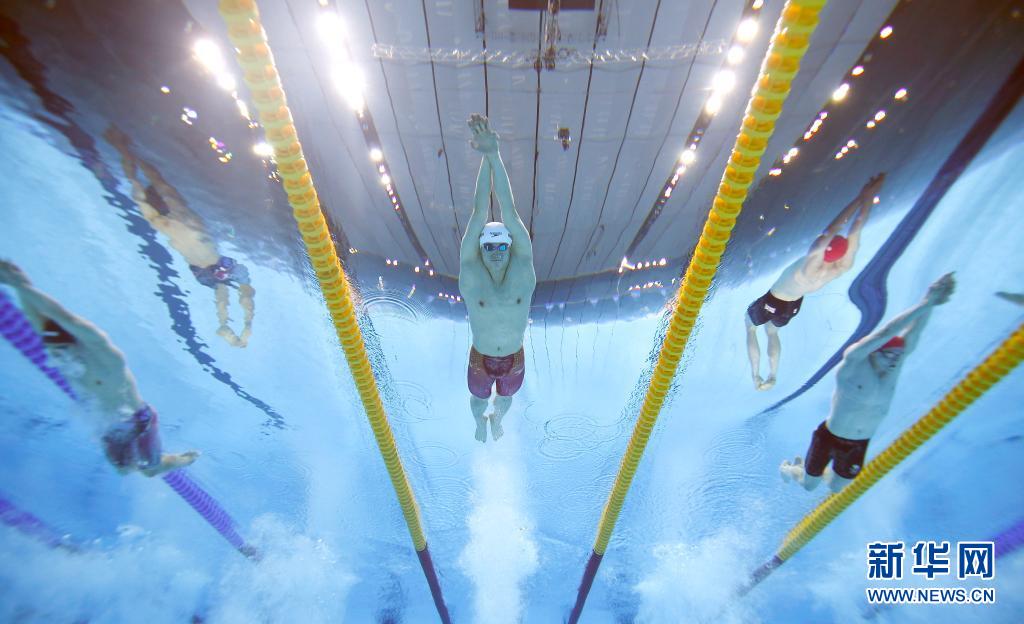 7月30日,汪顺(中)在比赛中。