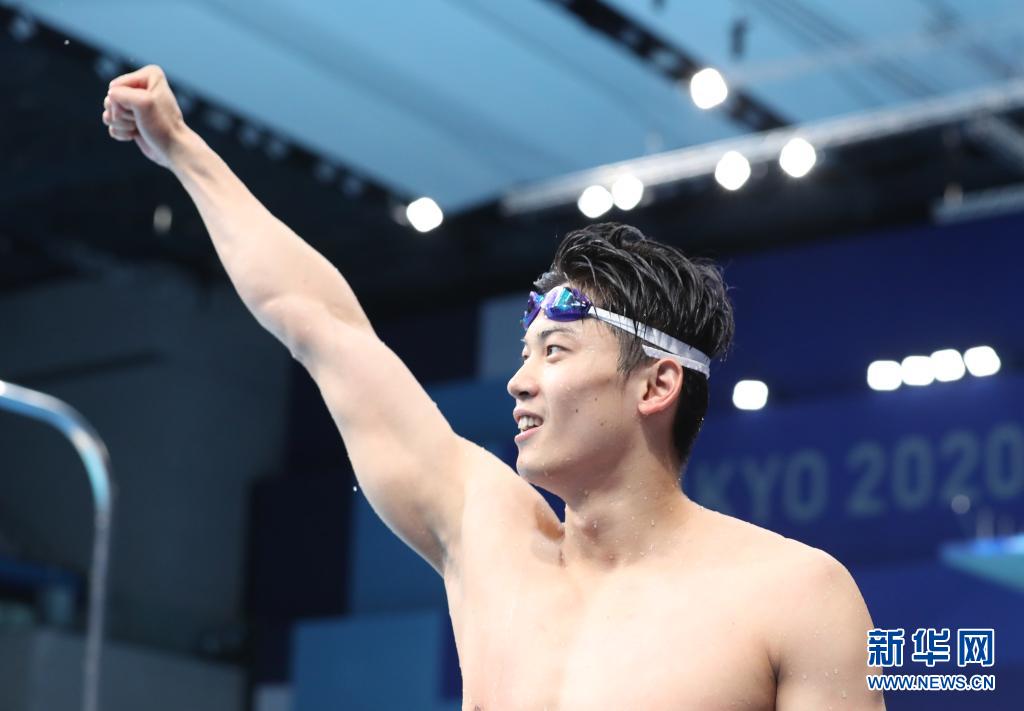 当日,在东京奥运会游泳男子200米个人混合泳决赛中,中国选手汪顺夺冠。新华社记者 丁旭摄