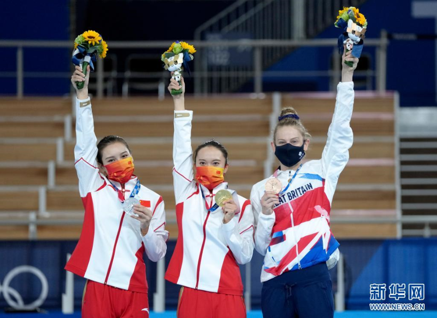 当日,在东京奥运会蹦床项目女子决赛中,中国选手朱雪莹夺得冠军,刘灵玲获得亚军。