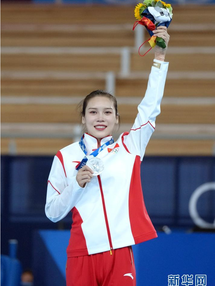 当日,在东京奥运会蹦床项目女子决赛中,中国选手朱雪莹夺得冠军,刘灵玲获得亚军。