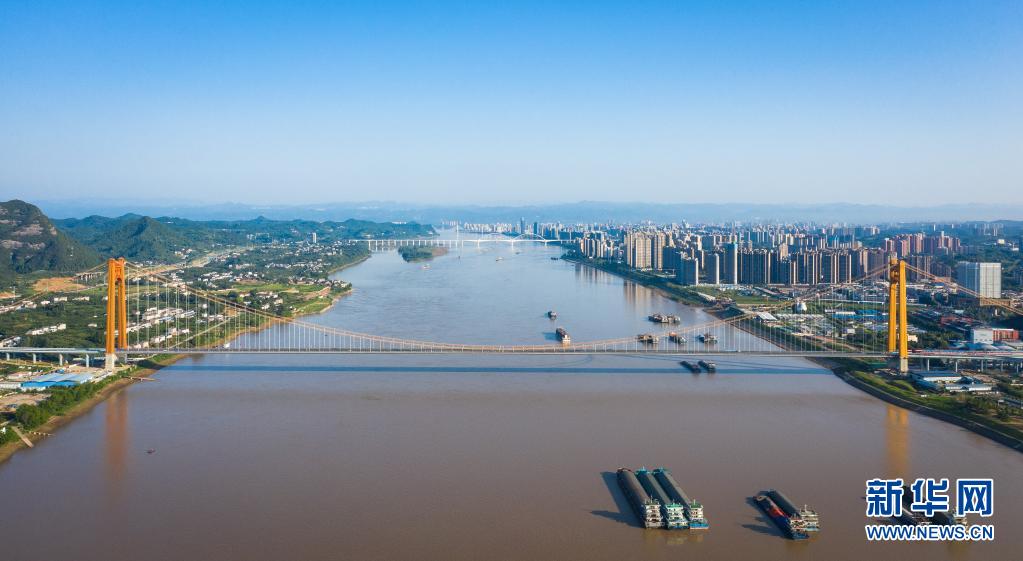 7月30日拍摄的宜昌伍家岗长江大桥(无人机照片)。新华社记者 肖艺九 摄