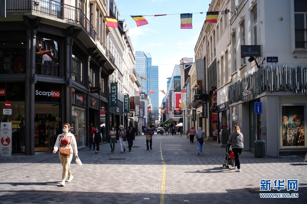7月30日,人们走在比利时布鲁塞尔的一条商业街上。