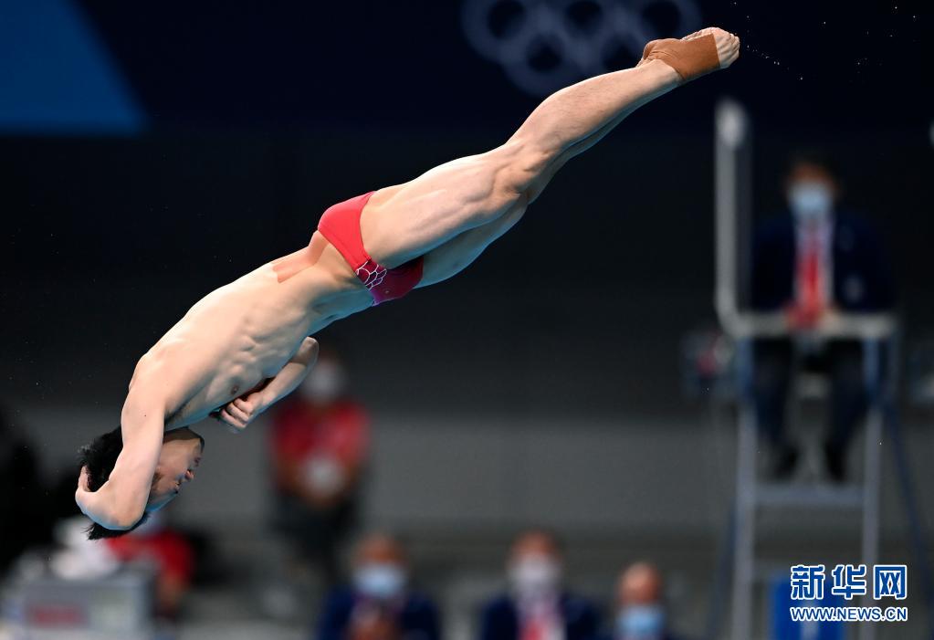 8月3日,中国选手谢思埸在比赛中。 当日,在东京奥运会跳水男子三米板决赛中,中国选手谢思埸获得冠军,王宗源获得亚军。 新华社记者 许畅 摄