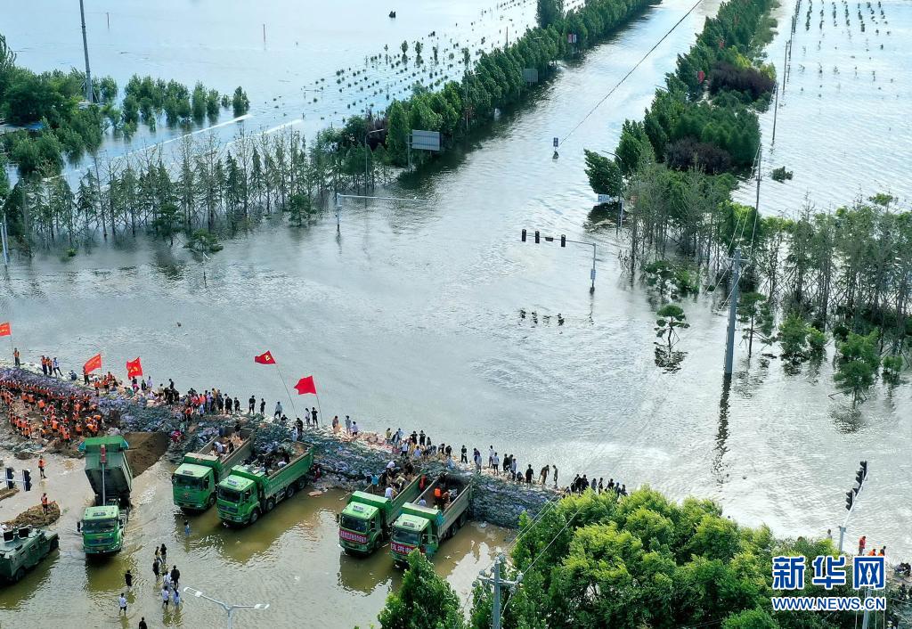 在河南省鹤壁市浚县傅庄堤上,救援人员和群众一起填装沙袋,加固大堤(7月29日摄,无人机照片)。 河南省人民政府新闻办公室8月2日举行新闻发布会通报河南最新灾情。截至8月2日12时,此次特大洪涝灾害已致302人遇难,50人失踪。全省共有150个县(市、区)、1663个乡镇、1453.16万人受灾。全省组织紧急避险93.38万人,转移安置最高峰值147.08万人;倒塌房屋30616户、89001间;农作物受灾面积1635.6万亩,成灾面积872.3万亩,绝收面积380.2万亩。 洪魔肆虐中原大地,来自全国各地的救援力量与时间赛跑,抢救被困群众,助力灾后重建……灾难面前,无数人挺身而出,把保障人民群众生命财产安全放在第一位,用生命守护生命,筑起坚强堡垒,汇聚起战胜洪灾的磅礴伟力。 新华社记者 李安 摄 |