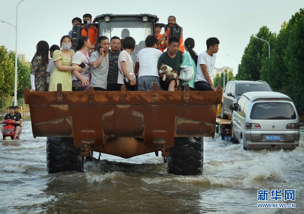 在河南省郑州市白沙镇,志愿者李伟驾驶着铲车运送市民越过积水道路(7月25日摄)。 河南省人民政府新闻办公室8月2日举行新闻发布会通报河南最新灾情。截至8月2日12时,此次特大洪涝灾害已致302人遇难,50人失踪。全省共有150个县(市、区)、1663个乡镇、1453.16万人受灾。全省组织紧急避险93.38万人,转移安置最高峰值147.08万人;倒塌房屋30616户、89001间;农作物受灾面积1635.6万亩,成灾面积872.3万亩,绝收面积380.2万亩。 洪魔肆虐中原大地,来自全国各地的救援力量与时间赛跑,抢救被困群众,助力灾后重建……灾难面前,无数人挺身而出,把保障人民群众生命财产安全放在第一位,用生命守护生命,筑起坚强堡垒,汇聚起战胜洪灾的磅礴伟力。 新华社记者 李安 摄 |