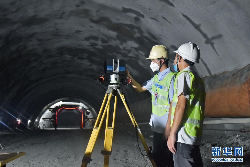 8月3日,在位于广西河池的贵南高铁德庆隧道内,技术人员在爆破前用3D扫描仪采集岩层数据。 8月3日,随着一声响亮的爆破,由中铁二局承建的贵南高铁德庆隧道顺利贯通,标志着全线隧道工程最大的难题被成功破解。 位于广西河池市境内的德庆隧道全长6610米,是贵(贵阳)南(南宁)高铁全线关键控制性工程。全线预计2023年底开通运营,届时南宁与贵阳间通行时间将缩短至2个多小时。 新华社记者 刘岭逸 摄