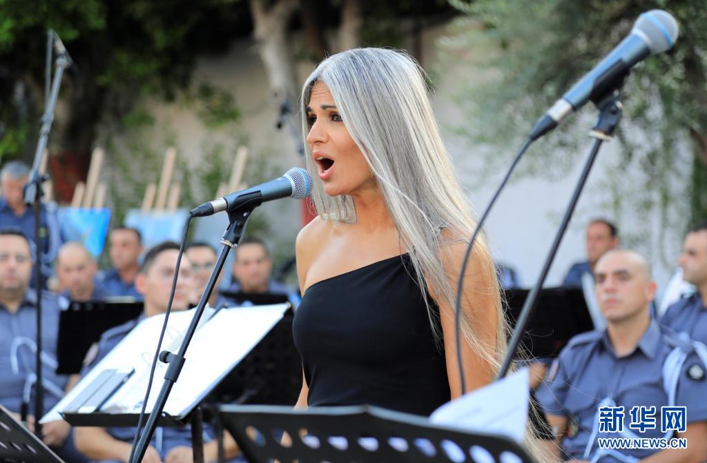 8月3日,一名歌手在黎巴嫩贝鲁特消防队总部举行的贝鲁特港口大爆炸一周年纪念活动上演唱。新华社记者 刘宗亚 摄 |