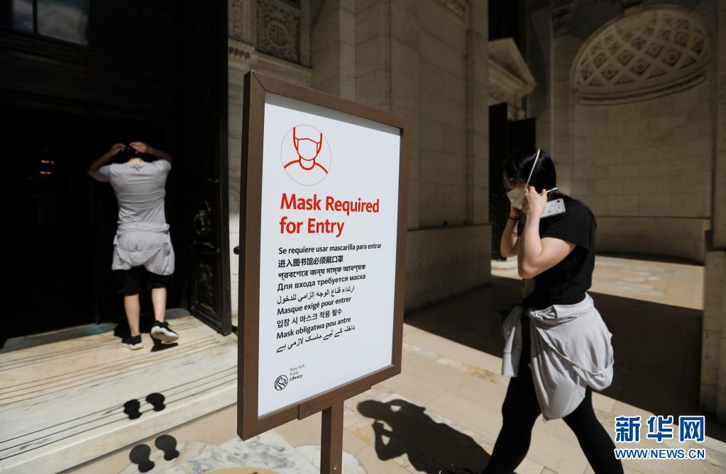 8月2日,人们进入美国纽约公立图书馆前佩戴口罩。