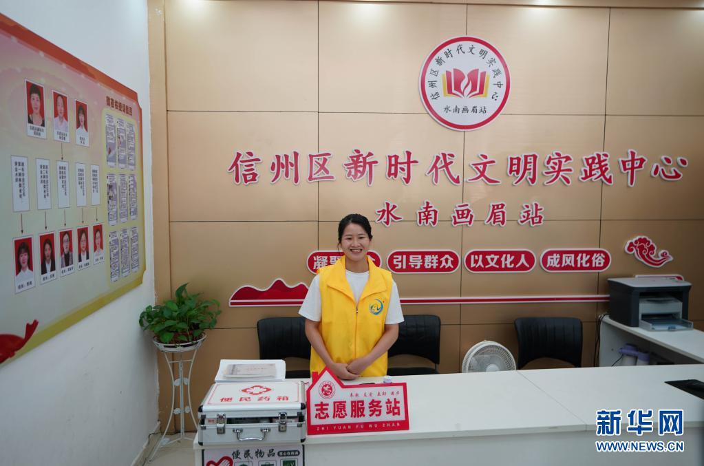 江西省上饶市信州区新时代文明实践中心水南画眉站的工作人员在值班(7月22日摄)。