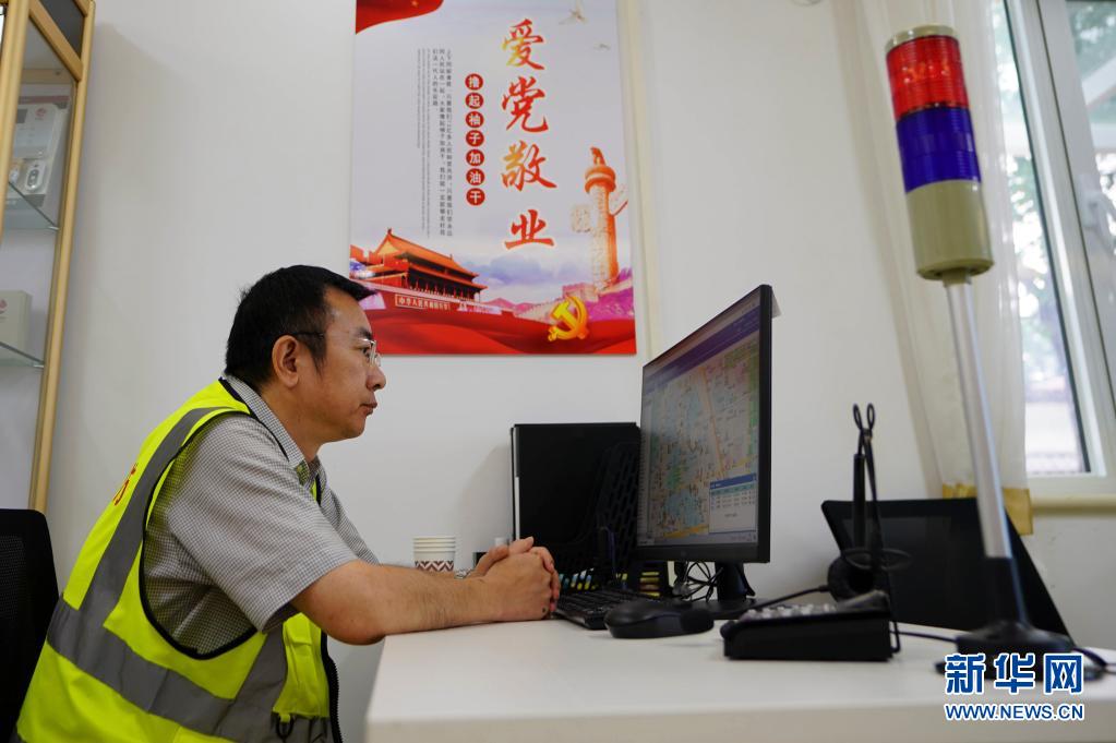工作人员北京市海淀区学院路街道石油共生大院进行安全监测(7月27日摄)。