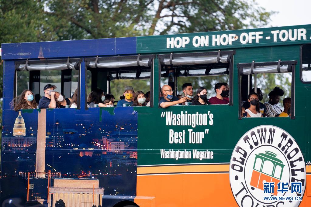 8月6日,人们乘坐旅游巴士在美国首都华盛顿游览。