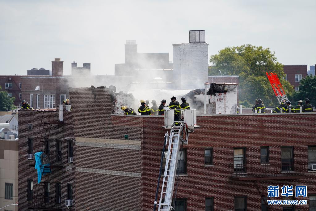 8月10日,消防员在美国纽约发生火灾的居民楼的楼顶工作。 据纽约市消防部门10日消息,纽约一幢6层居民楼当日发生火灾,造成1人死亡,4人受伤。 新华社记者 王迎 摄