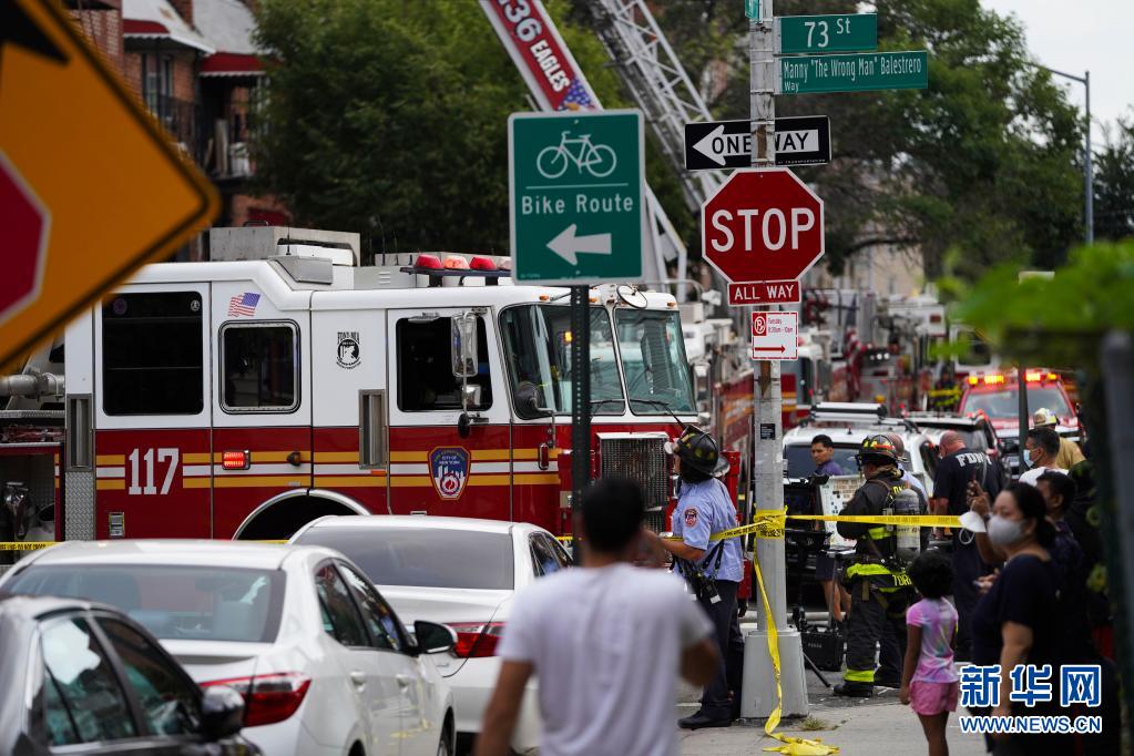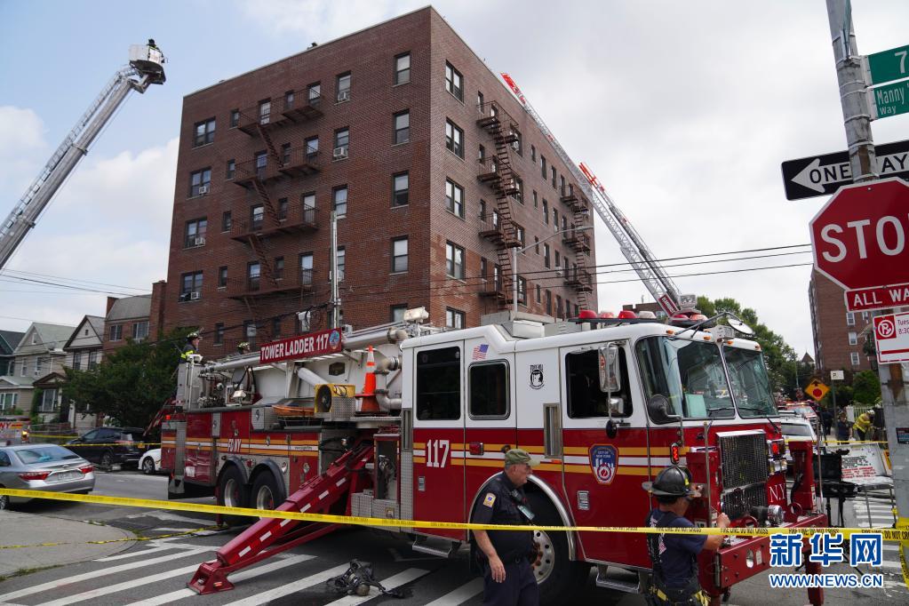 8月10日,消防员在美国纽约发生火灾的居民楼工作。 据纽约市消防部门10日消息,纽约一幢6层居民楼当日发生火灾,造成1人死亡,4人受伤。 新华社记者 王迎 摄