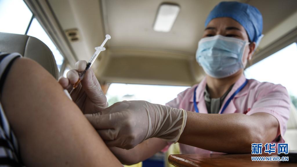 8月12日,广西融安县长安镇安宁村大袍屯村民在疫苗接种流动车上接种疫苗。 为帮助山村群众接种新冠疫苗,广西融安县根据县乡道路特点及所辖乡镇农村情况,出动疫苗接种流动车到偏僻山村,打通疫苗接种“最后一公里”。 新华社记者 张爱林 摄