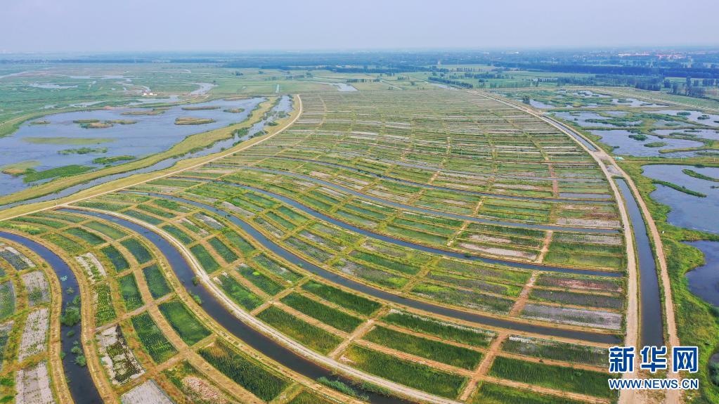 这是雄安新区唐河污水库治理修复工程现场。唐河污水库库尾距白洋淀仅2.5千米,曾对白洋淀的水环境质量造成较大影响(8月14日摄,无人机照片)。新华社记者 牟宇 摄