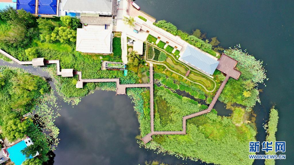 这是白洋淀区安新县圈头乡邵庄子村内经过改造后建设的游园(8月14日摄,无人机照片)。新华社记者 牟宇 摄