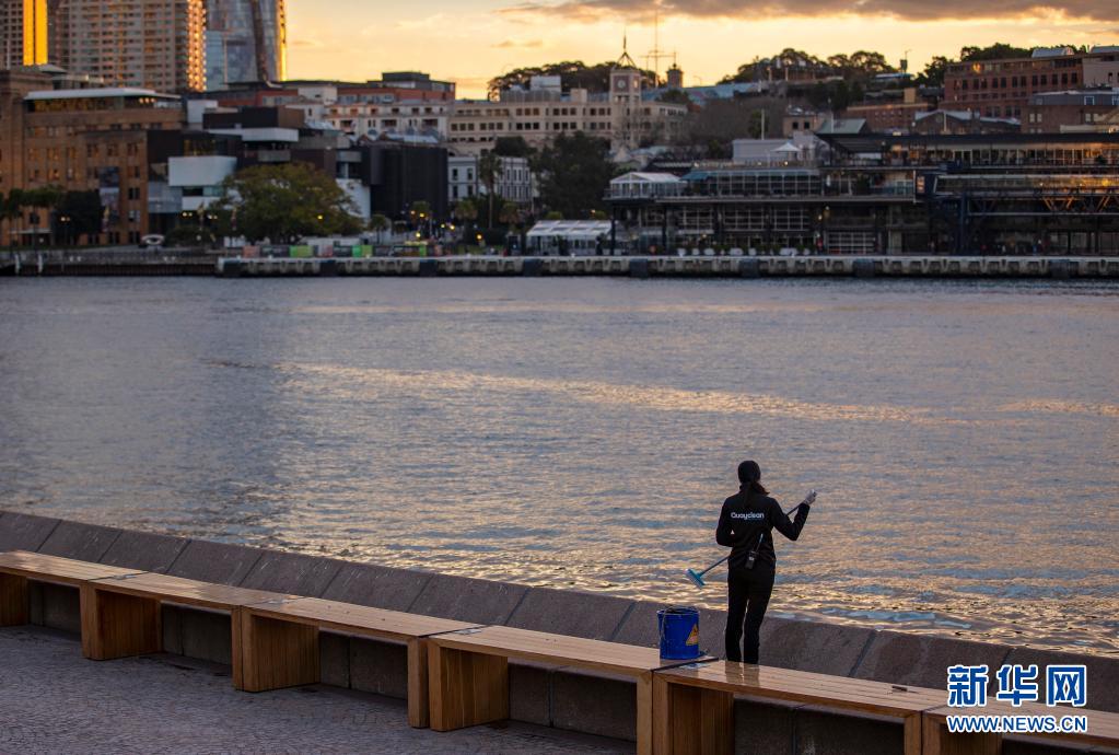 8月10日,在澳大利亚悉尼,一位工作人员清洁歌剧院前广场。 悉尼所在的澳大利亚新南威尔士州宣布,8月9日本地新增新冠确诊病例356例,创今年以来新高。 新华社记者 白雪飞 摄