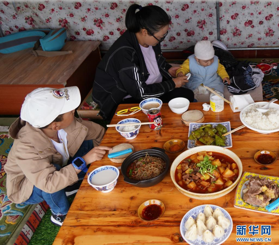 红原县邛溪镇一个藏族家庭在用餐(8月14日摄)。新华社记者 尹恒 摄