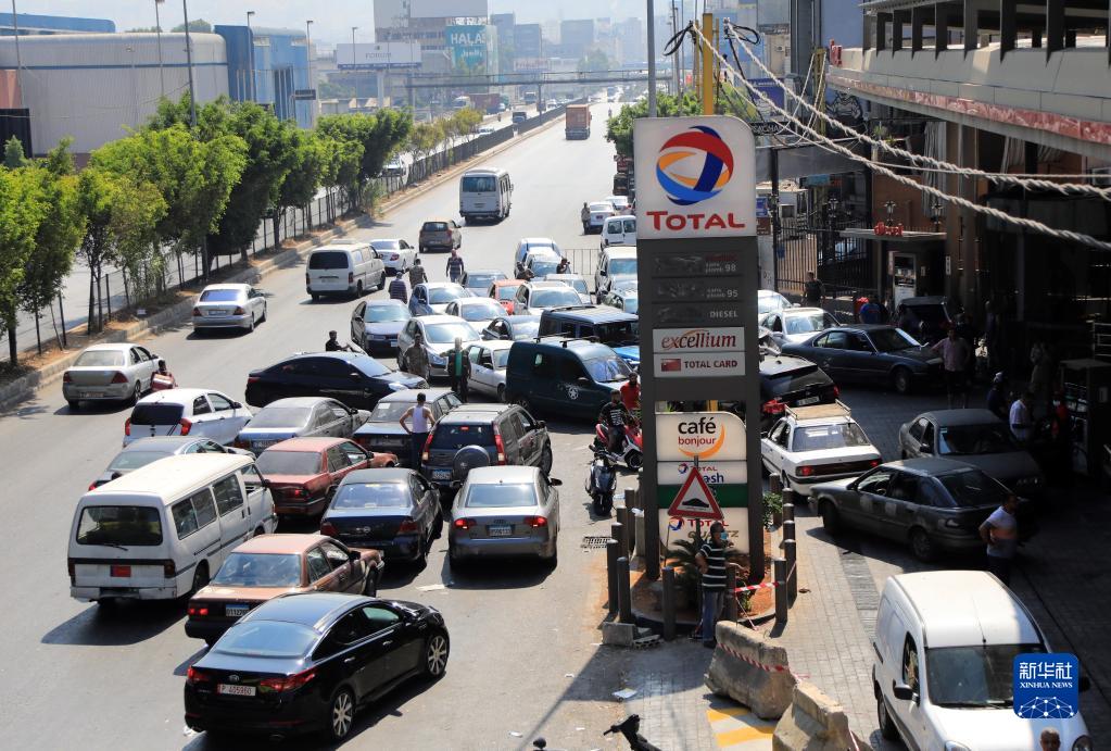 8月21日,车辆在黎巴嫩贝鲁特港附近的加油站排队加油。 由于经济危机,黎巴嫩不得不努力应对贫困加剧、货币暴跌和燃料短缺等难题。 新华社记者 刘宗亚 摄