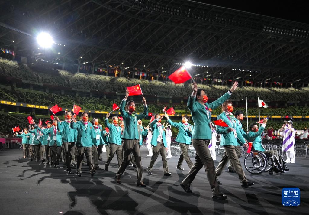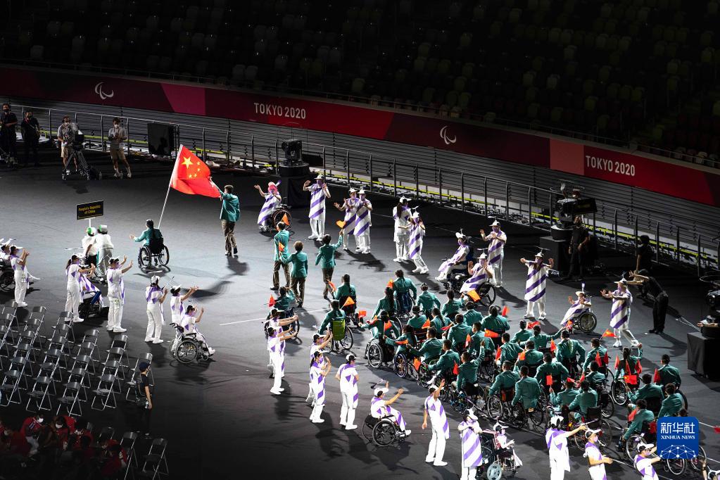 8月24日,第16届夏季残疾人奥林匹克运动会开幕式在日本东京举行。 这是中国体育代表团入场。 新华社记者 熊琦 摄