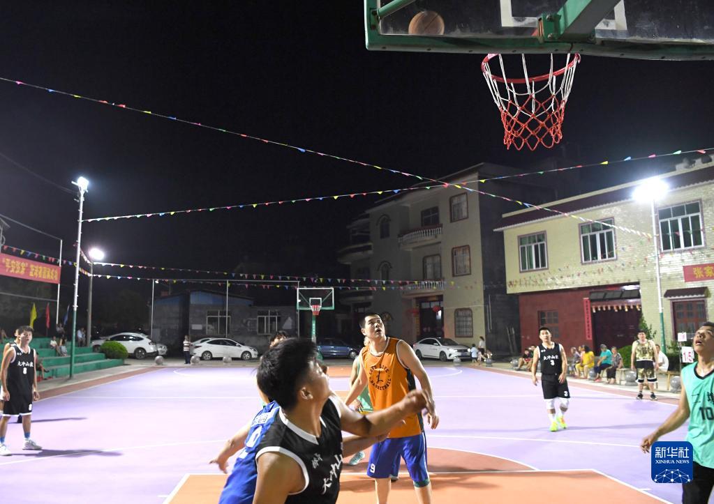 在广西桂林市平乐县张家镇湖洋村,人们在装有太阳能灯的篮球场打篮球(7月16日摄)。 8月23日至29日是全国节能宣传周,主题是“节能降碳,绿色发展”。随着脱贫攻坚战的全面胜利和乡村振兴战略的实施,广西大石山区的千山万弄里竖起一盏盏太阳能路灯,这些路灯不仅在夜间为村民照亮山路,更为村民点亮改变家乡面貌、振兴乡村的希望。 新华社记者 周华 摄