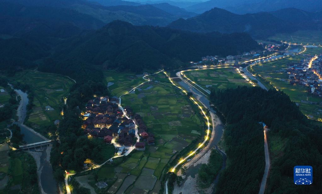 这是广西融水苗族自治县杆洞乡锦洞村夜景(无人机照片,8月26日摄)。 8月23日至29日是全国节能宣传周,主题是“节能降碳,绿色发展”。随着脱贫攻坚战的全面胜利和乡村振兴战略的实施,广西大石山区的千山万弄里竖起一盏盏太阳能路灯,这些路灯不仅在夜间为村民照亮山路,更为村民点亮改变家乡面貌、振兴乡村的希望。 新华社记者 黄孝邦 摄